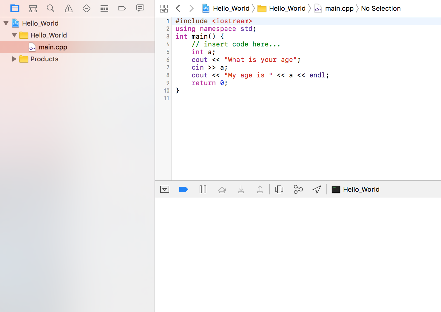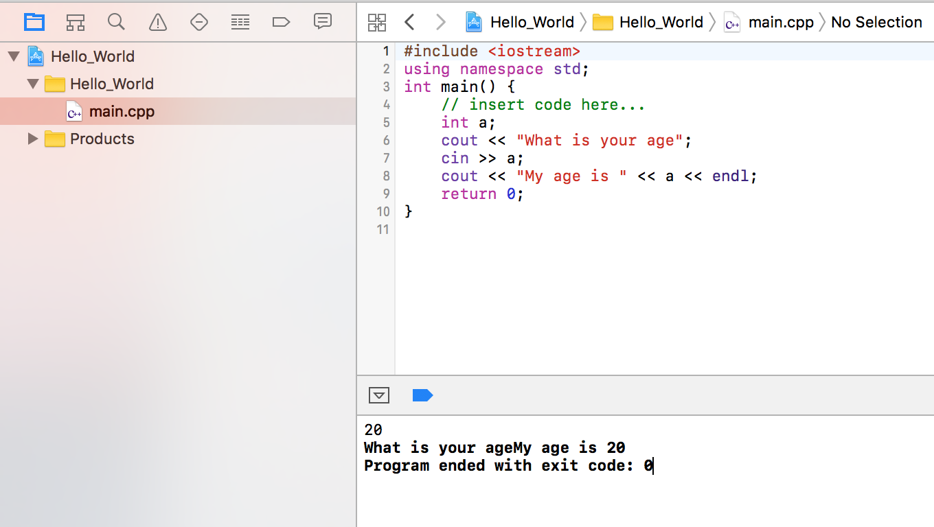基本上,我在Xcode Version 8.3 (8E162)中运行一个简单的程序