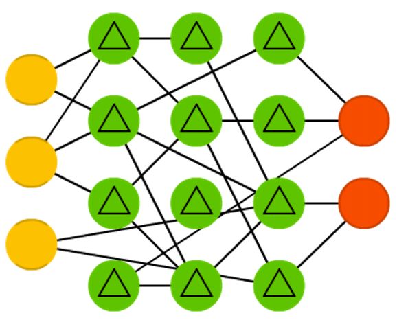 PS:我开发了Javascript神经网络库,我创建了一个onlinedemo,其中神经网络进化为一个异或门--没有层,只是从输入和输出开始。在这里看。。您的示例图片是您可以通过这个库开发什么样的网络。