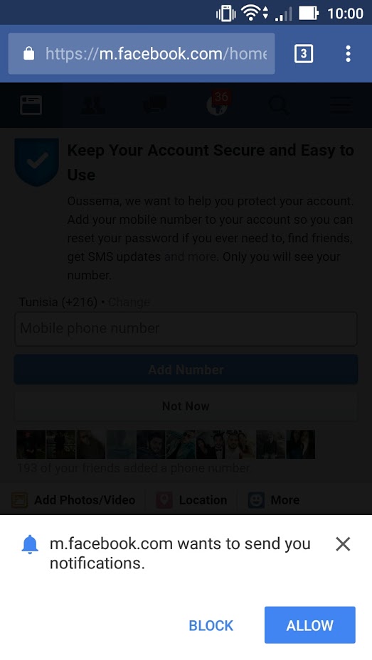 是的,即使您的浏览器没有打开,您也可以在手机上接收推送通知,但是您需要在提示时按“允许”来启用它,如下所示。