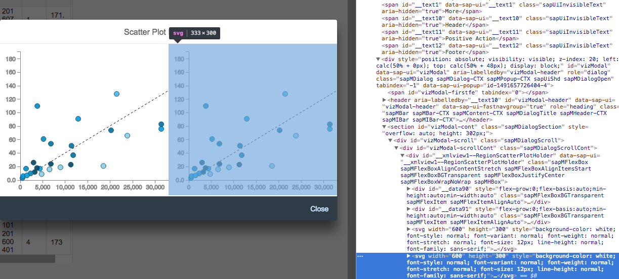 我有一个包含散点图的自定义控件。当按下按钮时,它会打开一个显示图表的模态/对话框控件(见下图)。唯一的问题是图表显示了两次!打开dev工具后,似乎所有的生命周期都呈现了两次。我不知道为什么会发生这种情况,但我只需要呈现一次。