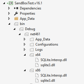 然而,sqlite包与net461类库项目不能很好地工作,没有任何dll被扩展到bin/x86或bin/x64文件夹