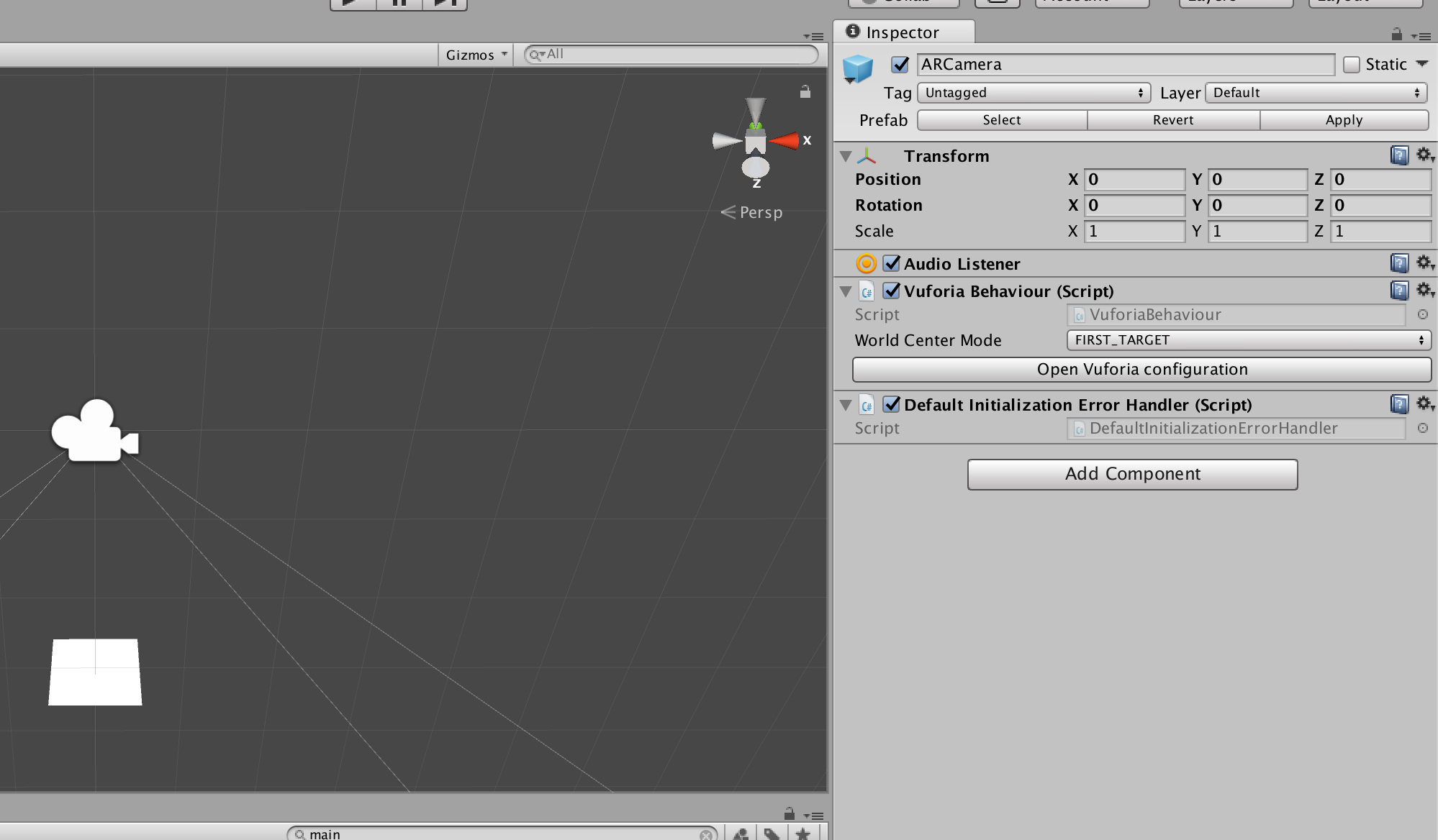 这就是我的ARCamera的样子。另外,我不能手动将这些组件附加到ARCamera,因为包中缺少脚本。