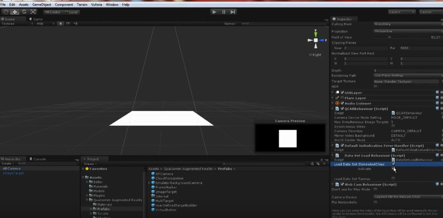 我对ARCamera有一些问题。我安装了团结5.6.03f。我从联合资产商店进口了Vuforia包装。而不是从预制板文件夹中拖动ARCamera &它缺少了很多组件。我怎么才能解决这个问题?我还试着从联合网站下载Vuforia软件包&而不是导入它,但也有相同的结果。在导入过程中,会提示我执行API更新