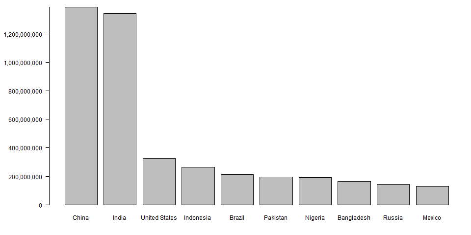 barplot(Pop, names=df$Country, yaxt = "n")