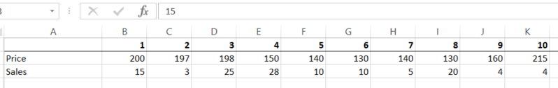 | Price | Refers to: | =Sheet3!$B$2:$K$2 |
