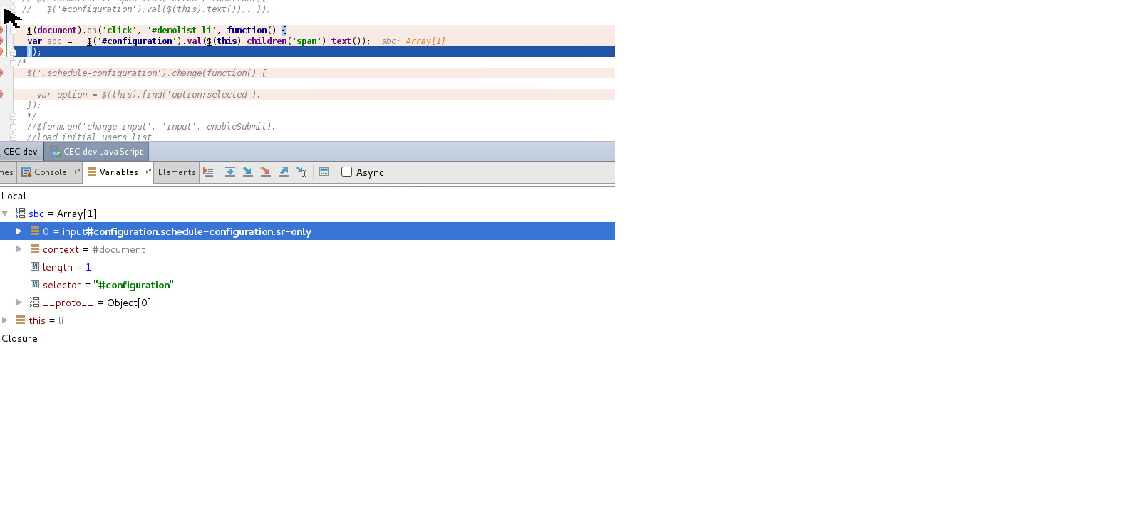 将单击事件处理程序附加到$('#demolist li a'),但<ul>中没有<a>元素。尝试将事件处理程序附加到$('#demolist li span')。