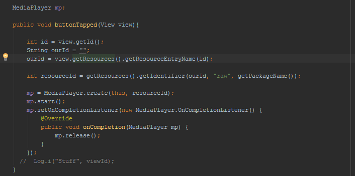 对于我想要完成的任务,我还尝试了一个if语句,在这里我测试了,如果mp.isplaying(),并做了mp.stop,但是没有结果。所有这些都在项目的主类中。在oncreate方法中没有任何内容。