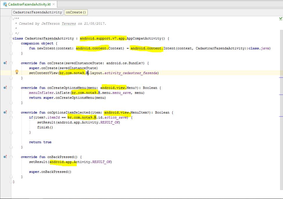 class MyActivity : android.support.v7.app.AppCompatActivity() { //"inline" import