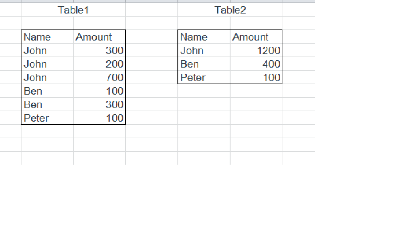 我从api中获取数据,并将其显示在一个包含2列的表中。第一列包含名称,第二列包含数量,如Table1所示。api中的数据包含重复的名称,同一名称的数量也不同。我想以这样的方式显示:它总结了唯一名称的数量,并且只显示唯一的名称和总量,如Table2所示。我正在使用ReactJS来显示表。得到这个结果的更好的逻辑是什么。我以json的形式从api中检索数据,并将其放入数组中。我很新的反应,发现很难玩的数据。