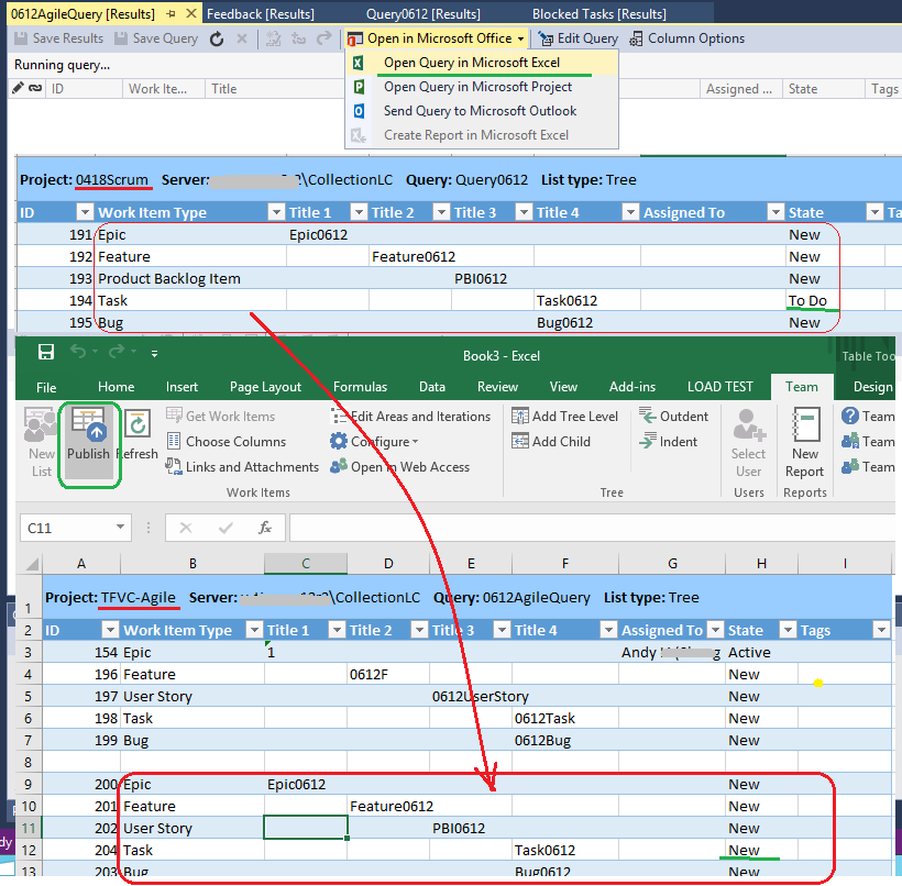 您可以在Scrum和敏捷之间使用使用Excel导出和导入工作项。