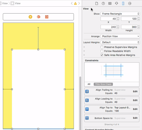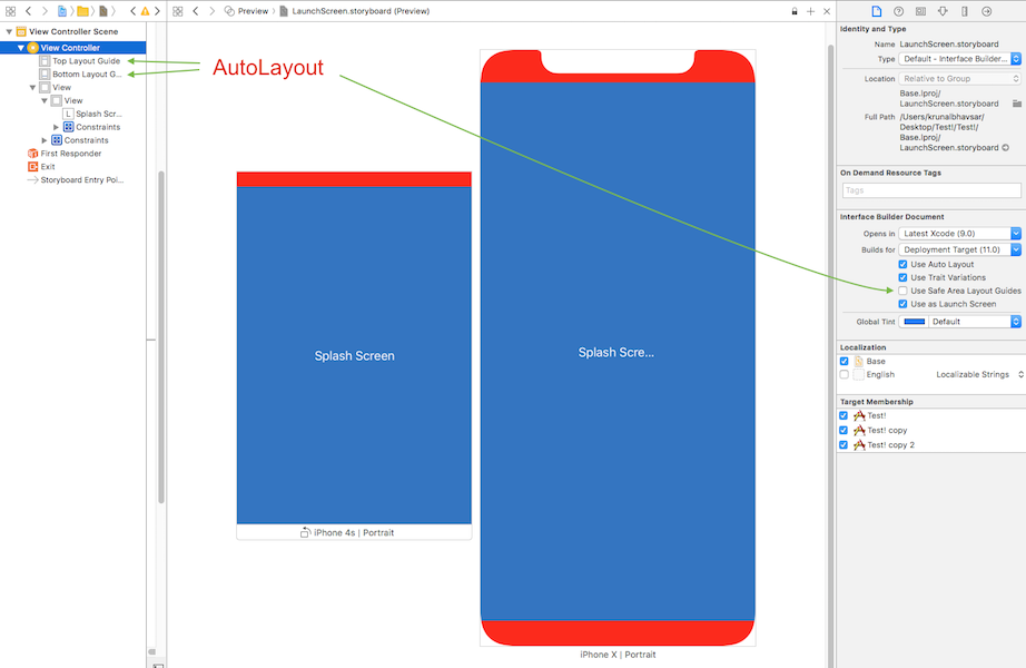 下面是示例快照,如何启用安全区布局和编辑约束。