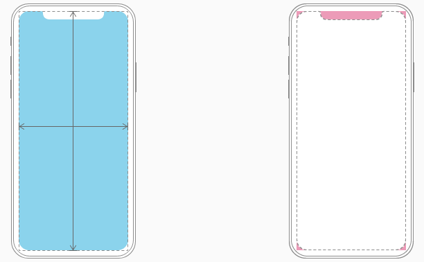 在为iPhone X设计时,您必须确保布局填充屏幕,并且不会被设备的圆角、传感器外壳或访问主屏幕的指示器所遮挡。