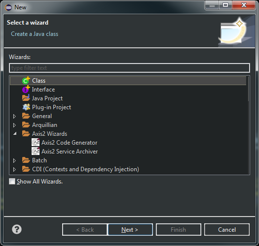 Axis2 Code Generator和Axis2 Service Archiver巫师: