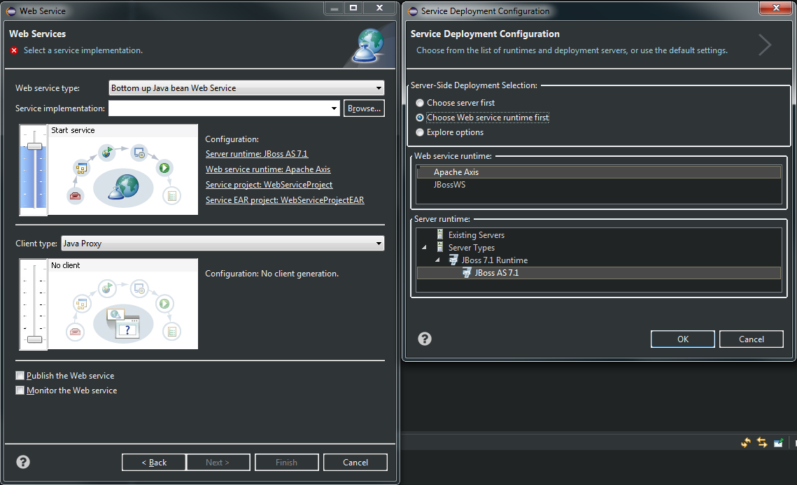 当我尝试运行向导并创建时,我只是没有看到设置Axis2运行时的选项,而只看到了该运行时。