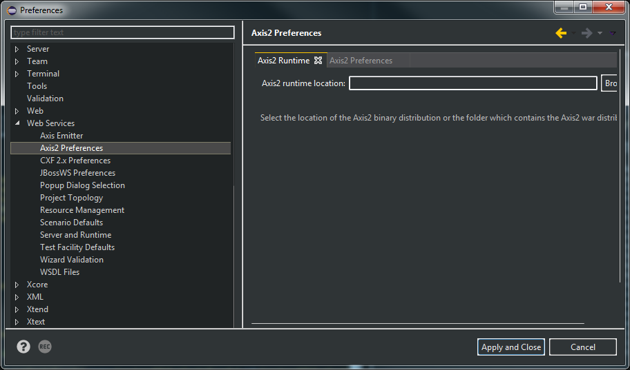 我正在用上一个Eclipse,氧气RC3做一些测试。我知道这只是一个RC产品,但是在里程碑中,Axis2运行时没有问题。这里和现在的轴心运行时,它不存在。