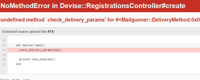 我向heroku部署了rails 5应用程序。我用邮件发送电子邮件,它在发展中发挥了良好的作用。在生产中,当我尝试注册一个用户时,我会得到以下错误: