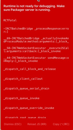 我选择android模拟器并重新加载Android。然后Android模拟器运行良好,但是iOS模拟器屏幕变成红色,错误文本显示: