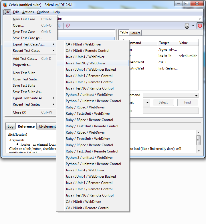 你好,我在运行Selenium IDE创建的Selenium测试时遇到了问题。