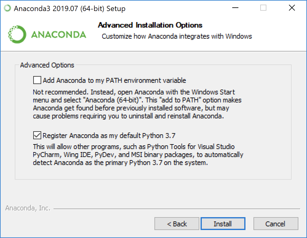 现在在windows上安装anaconda时,它不会自动添加Python或Conda。