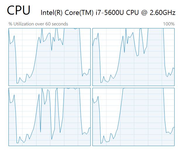 在此之后,我的CPU利用率图片如下所示