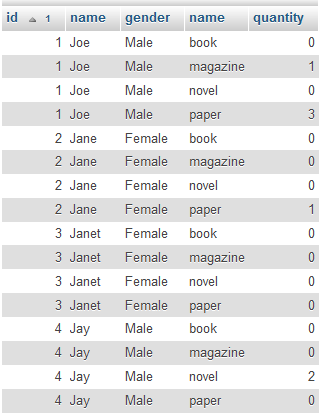 product_table id_名称 1份杂志 2本书 3倍纸 4小说 等等。