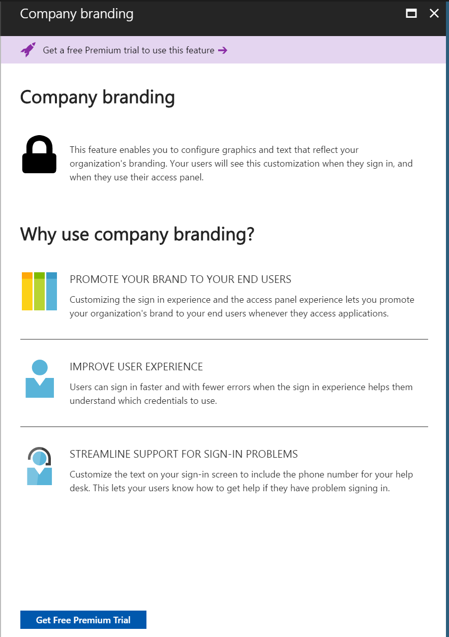 根据这个页面,为了使用公司品牌,需要升级Azure B2C: