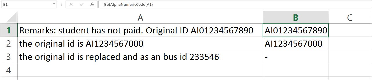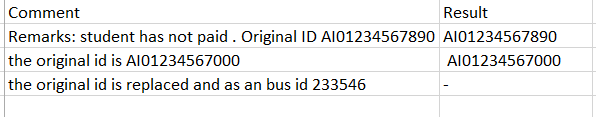 我希望有一个VBA从G列中提取字母数字值,这是一个句子。