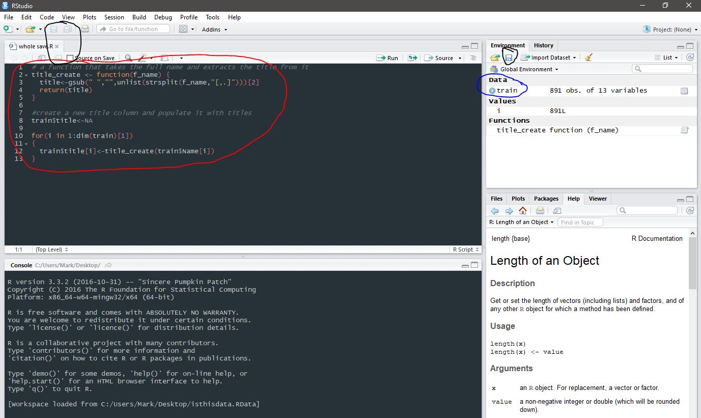 我试图在RStudio图形用户界面中找到如何在不编写代码的情况下完成这些操作。试图摆弄相同的图标(在黑色标记),但没有一个对我来说有意义。左边和右边的保存图标有什么区别?