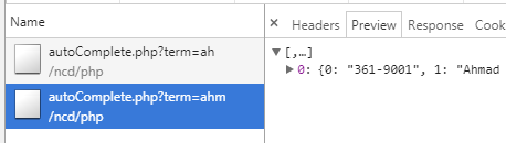 })我可以看到,如果在“网络”选项卡上键入名称,则可以看到返回的数组: