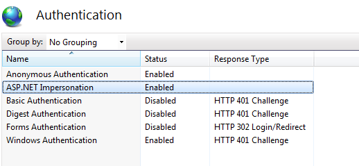 可以使用“启用ASP.NET模拟”覆盖此设置。
