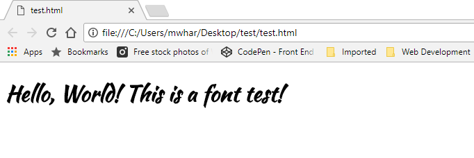 我在试图导入一个woff2字体文件以便在一个简单的测试网页中使用时遇到了困难。