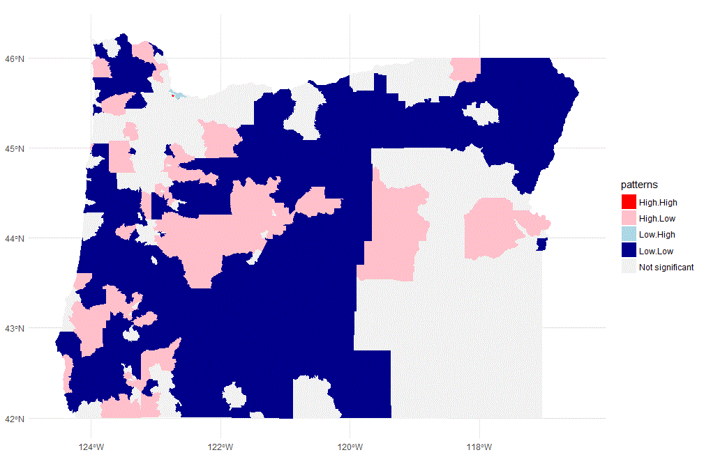 patterns[oregon.tract$sig == 0] <- "Not significant"