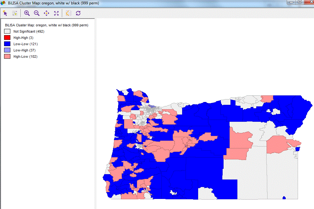 你可能会看到下面的结果--以这种方式产生的结果非常类似于从GeoDA开始的结果。