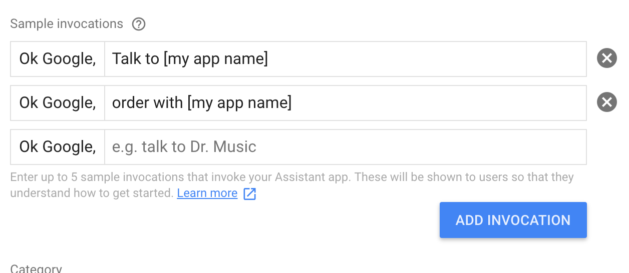 行动发现实际上是非常相似的网站和搜索引擎优化。除了"talk to“之外,还有许多专门文档化的触发短语,它们可以与操作的调用名称一起使用。除了这些记录在案的短语之外,该页面还表明,还有其他的短语也可以以同样的方式工作--例如,“询问”工作,没有触发短语,只使用您的调用名称。您可以认为这些显式调用类似于输入特定web URL的用户。