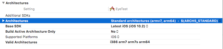 正如我在评论中提到的,Valid Architectures看起来是粗体的,这意味着它在某种程度上被改变了。尝试将其重置为默认值,方法是高亮显示这一行并点击后退空间。这也是一个好主意下载一个非测试版的Xcode。