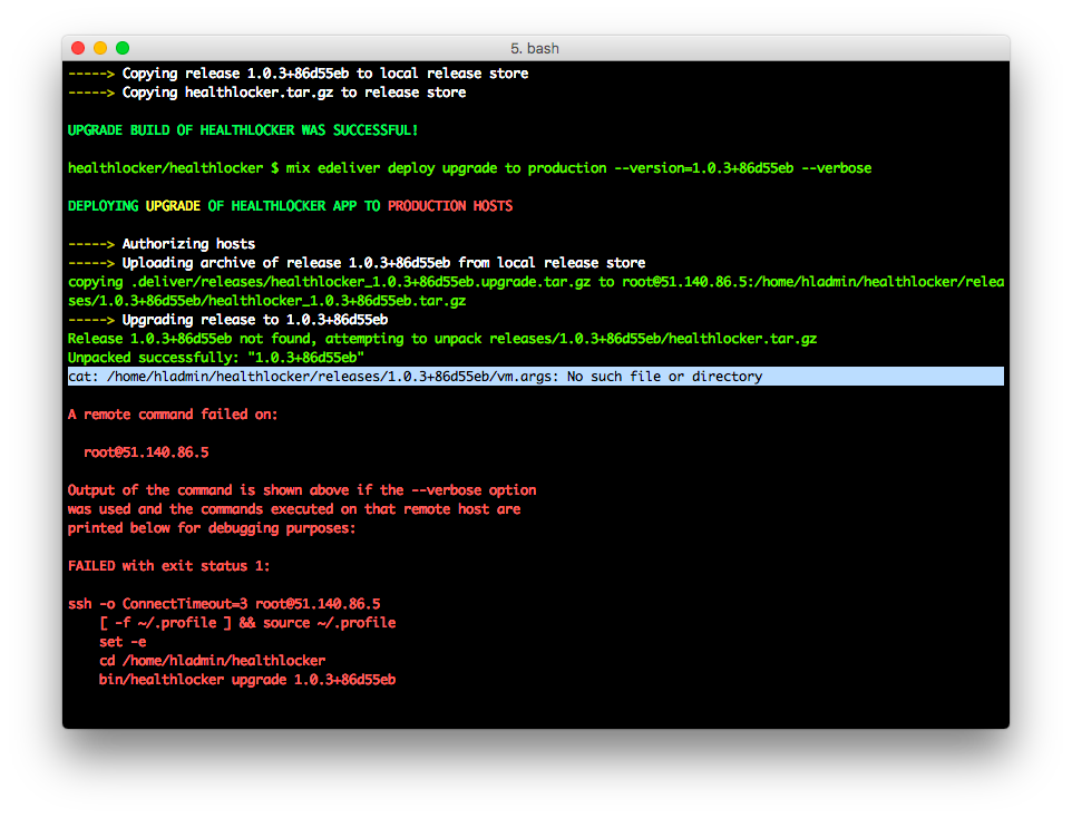 cat: /home/hladmin/healthlocker/releases/1.0.3+86d55eb/vm.args: No such file or directory注意:我们有一个bash脚本,它读取