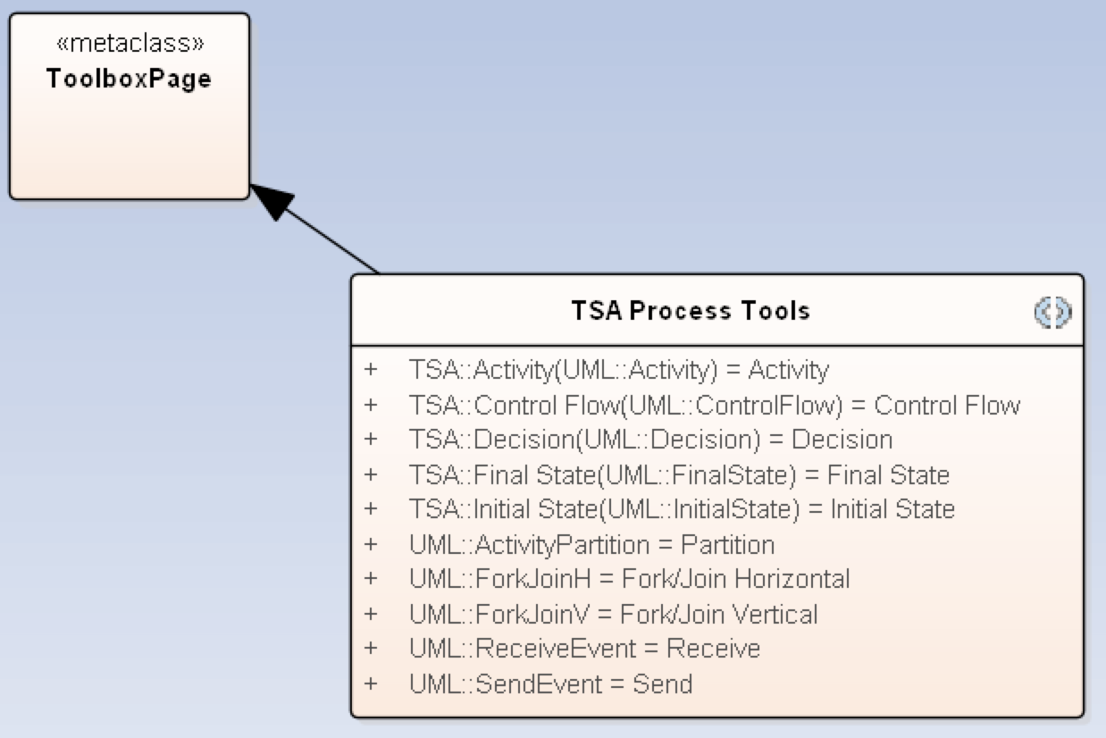 当列出所有工具时,包含工作中定义的自定义元素和关系的自定义工具箱也很好。
