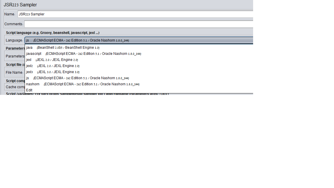 我不认为您将能够从那里删除条目,因为下拉列表正在使用ScriptEngineManager.getEngineFactories()方法进行动态填充,该方法在JMeter类路径中执行对可用脚本引擎的发现。
