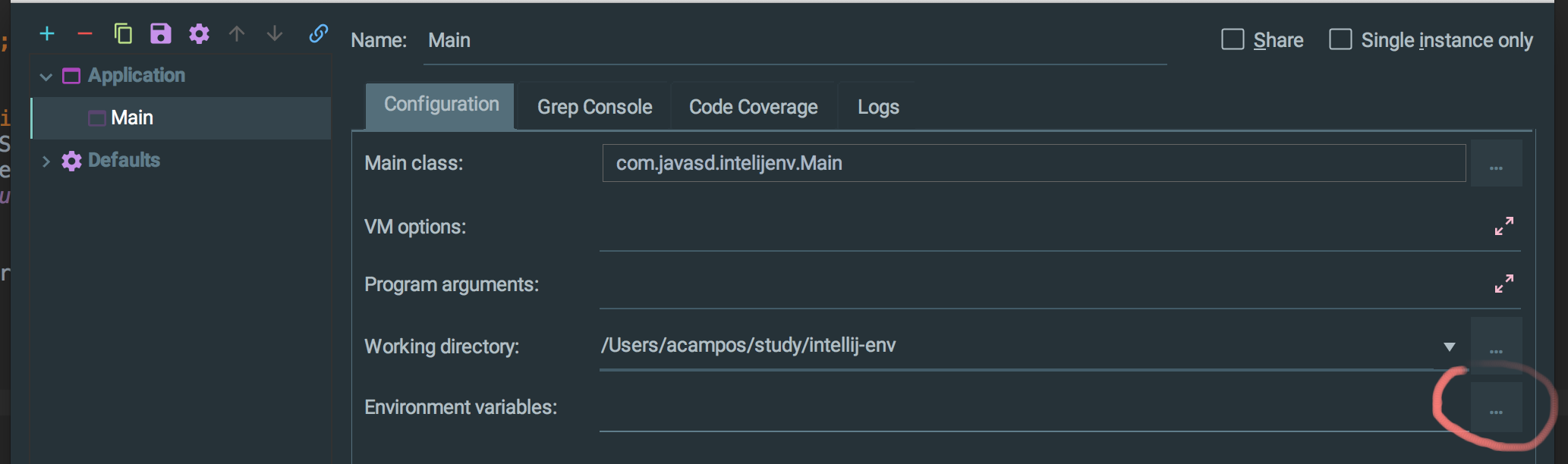 通常,出于安全考虑,我们不希望所有的环境变量都是可见的。我们要做的是,只在IntelliJ (或我们的程序)运行时使这些变量可见。