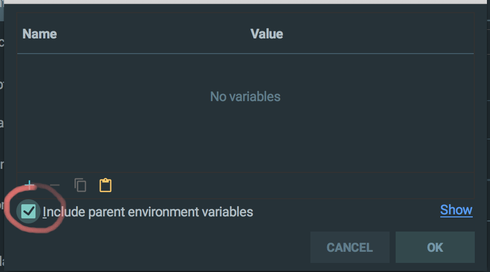 我需要在我所有的想法运行配置中使用环境变量。目前我使用run->edit configurations->and,然后在选定的配置中输入env变量。然而,当我需要运行孤立的测试场景时,这是非常乏味的,因为每个场景都创建了一个新的运行配置,并且我需要再次输入变量。