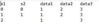 data2漏掉了第三点。因此,我想,我应该定义两个不同的x列,并将data2分配给x2。
