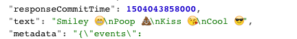 在我的节点服务器上,我可以看到表情符号被存储在DB中,并得到了正确的服务。只有在上传之后,这些角色才会失去完整性。我认为有一些字符编码技巧,我可以应用到JSON.stringify结果,但我还不知道细节。在这里寻求帮助。