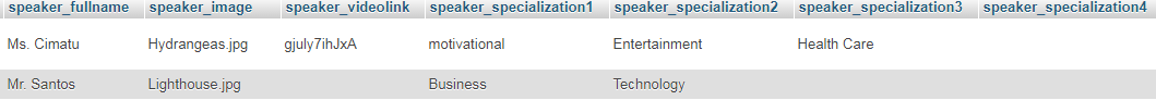 // Based on your code and image these appear to be the fields in the speakers table: