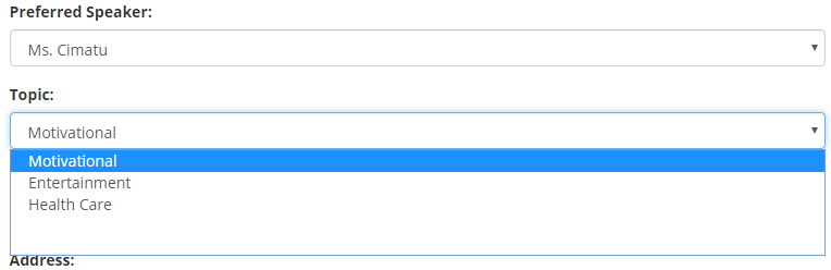 <label for="speaker">Preferred Speaker:</label>