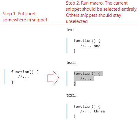 我想要创建一个宏,它允许选择文档中的整个代码块。