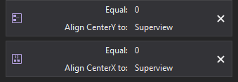 和中央按钮上的约束。