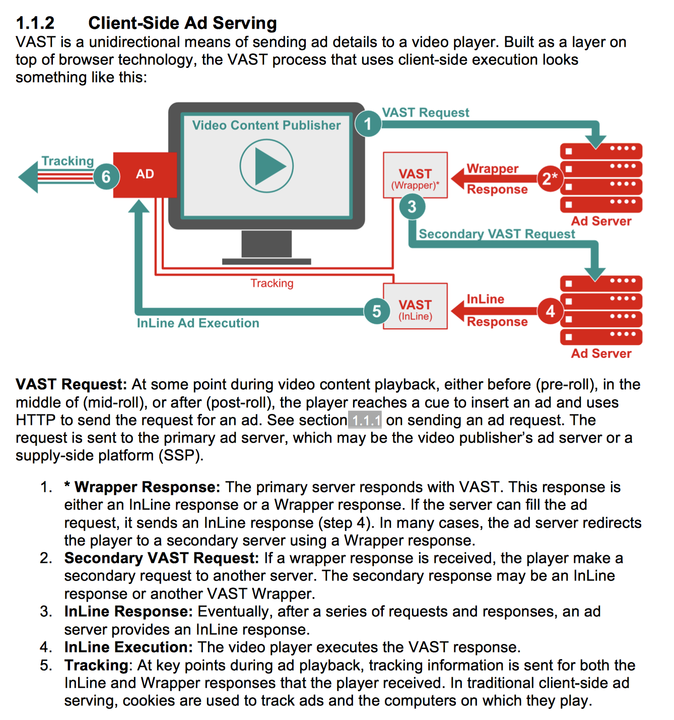有一些图表试图描述这一点在庞大的v4.0规范,第1.1节‘庞大的广告服务和跟踪’。不幸的是,对于其中一个图表来说,符号编号看起来可能出了问题,这使它有点混乱--如果您添加或想象图表下的第一个文本是下面摘录中的项目号,那么我认为更容易理解: