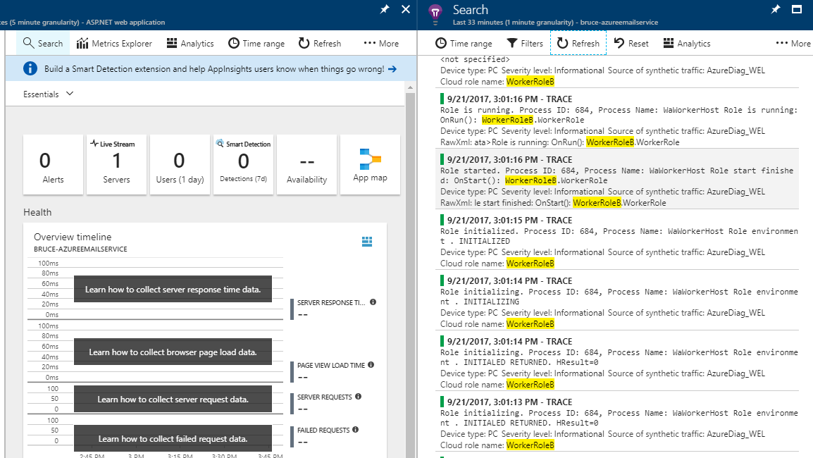 在部署到Azure Cloud之后,它可以按预期工作,我可以从AI中检索诊断数据如下: