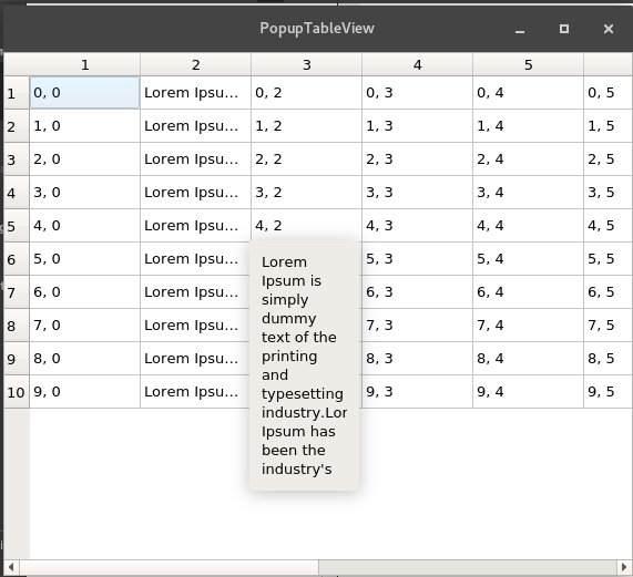 的表,表中有两列。第二列包含一个很长的字符串,如果不调整大小,就无法完全显示。当我将鼠标悬停在一个项目上,而矩形靠近鼠标时,我想在矩形中显示字符串(许多像Eclipse和VS这样的软件都有这样的功能)。