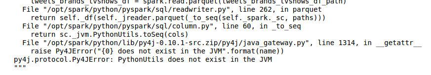 • PythonUtils不存在于JVM中(当读取'parquet‘数据格式时)
